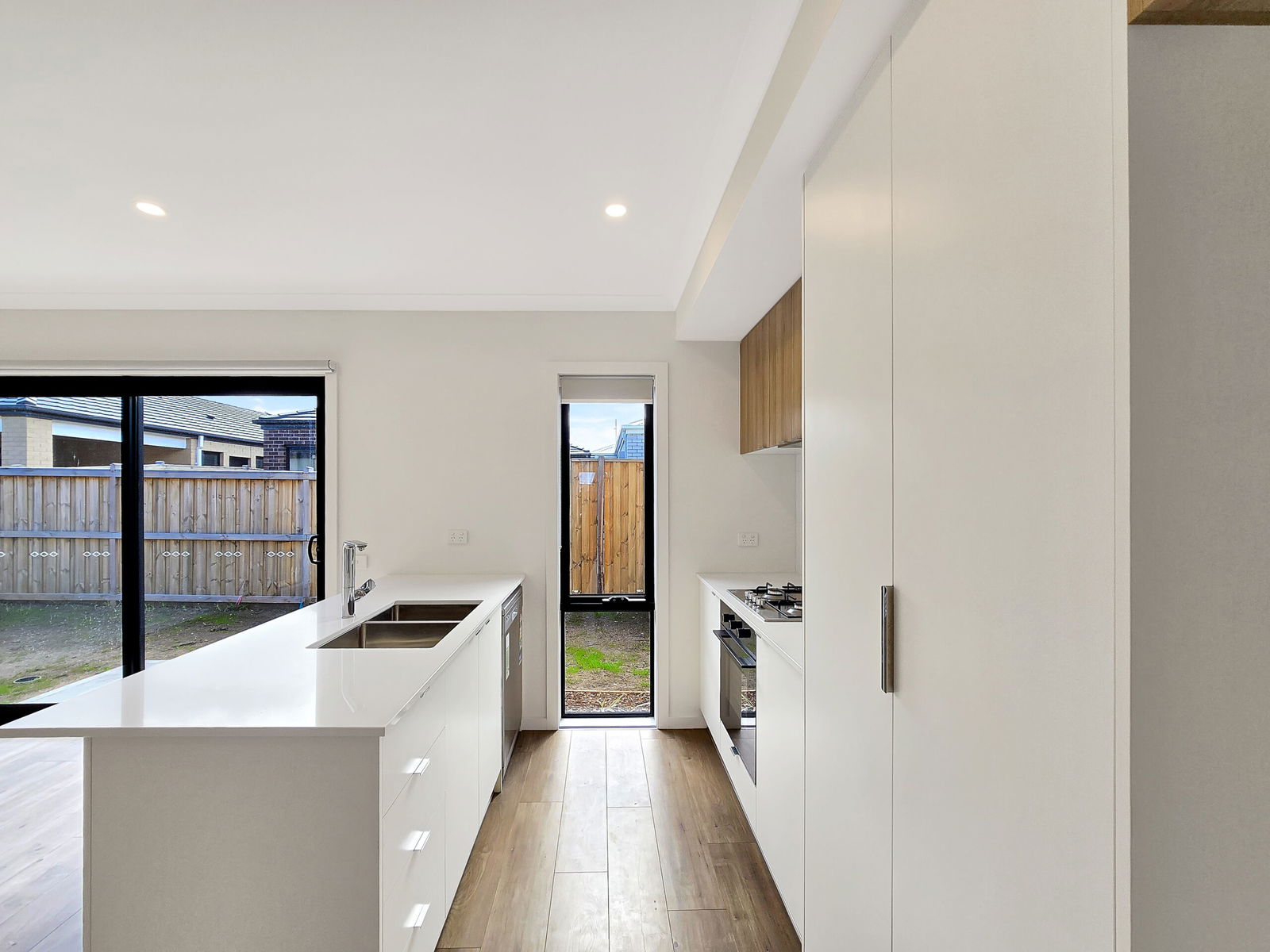 – Kitchen including 600mm electric oven, 4 burner gas cook-top, dishwasher, stone bench tops and built-in pantry