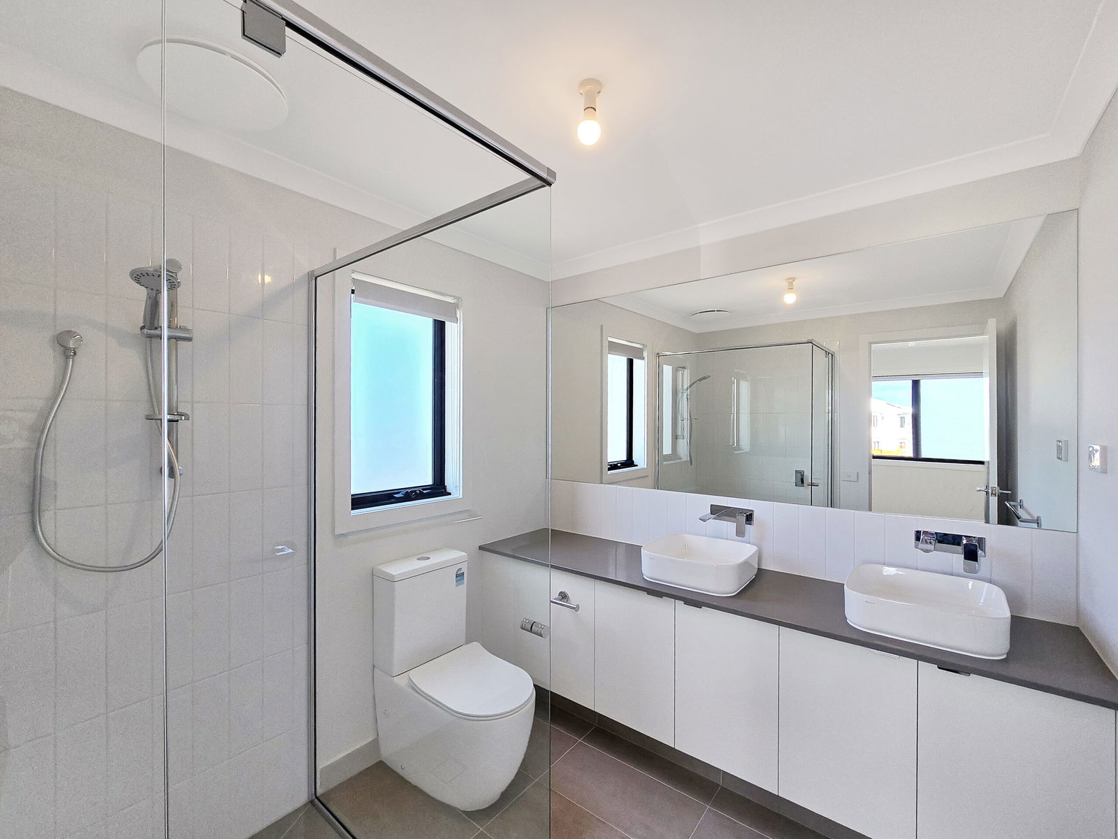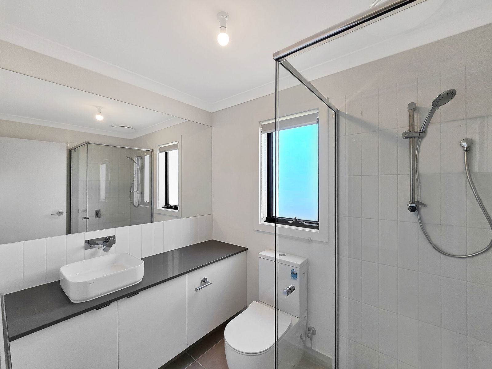 – Main bathroom with shower, vanity and toilet