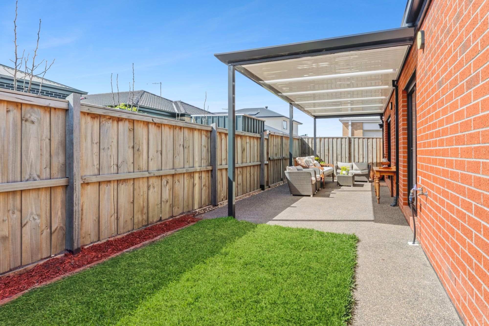 Outdoor: North facing, undercover alfresco with exposed aggregate concrete, grass area, low maintenance front & backyard, main living flowing through sliding stacker doors to entertaining space, exposed aggregate concrete path surrounding house, side gate access.