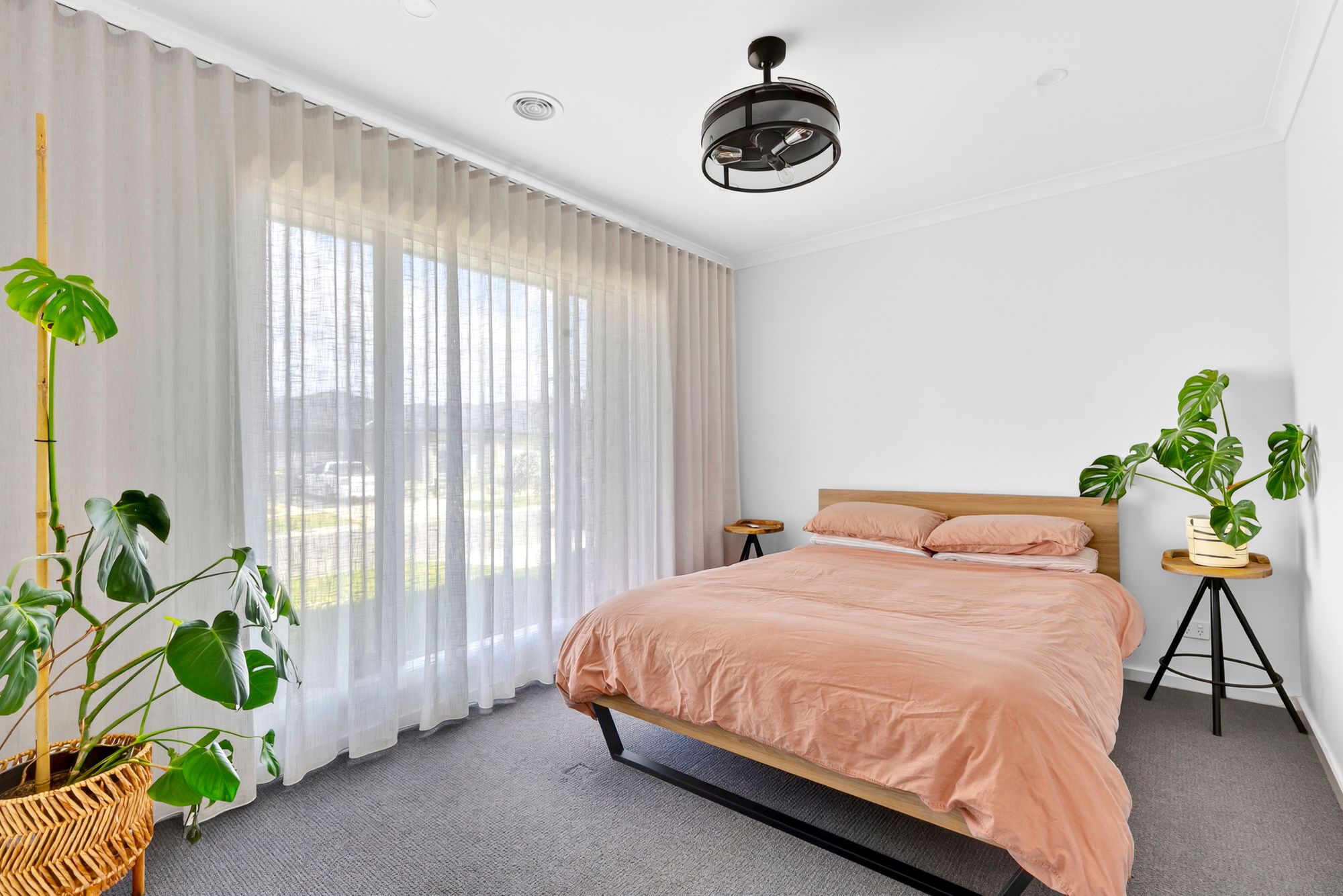 Master Suite: Sheer curtains, carpet flooring, ducted heating, feature light & ceiling fan, downlights, walk-in-robe.