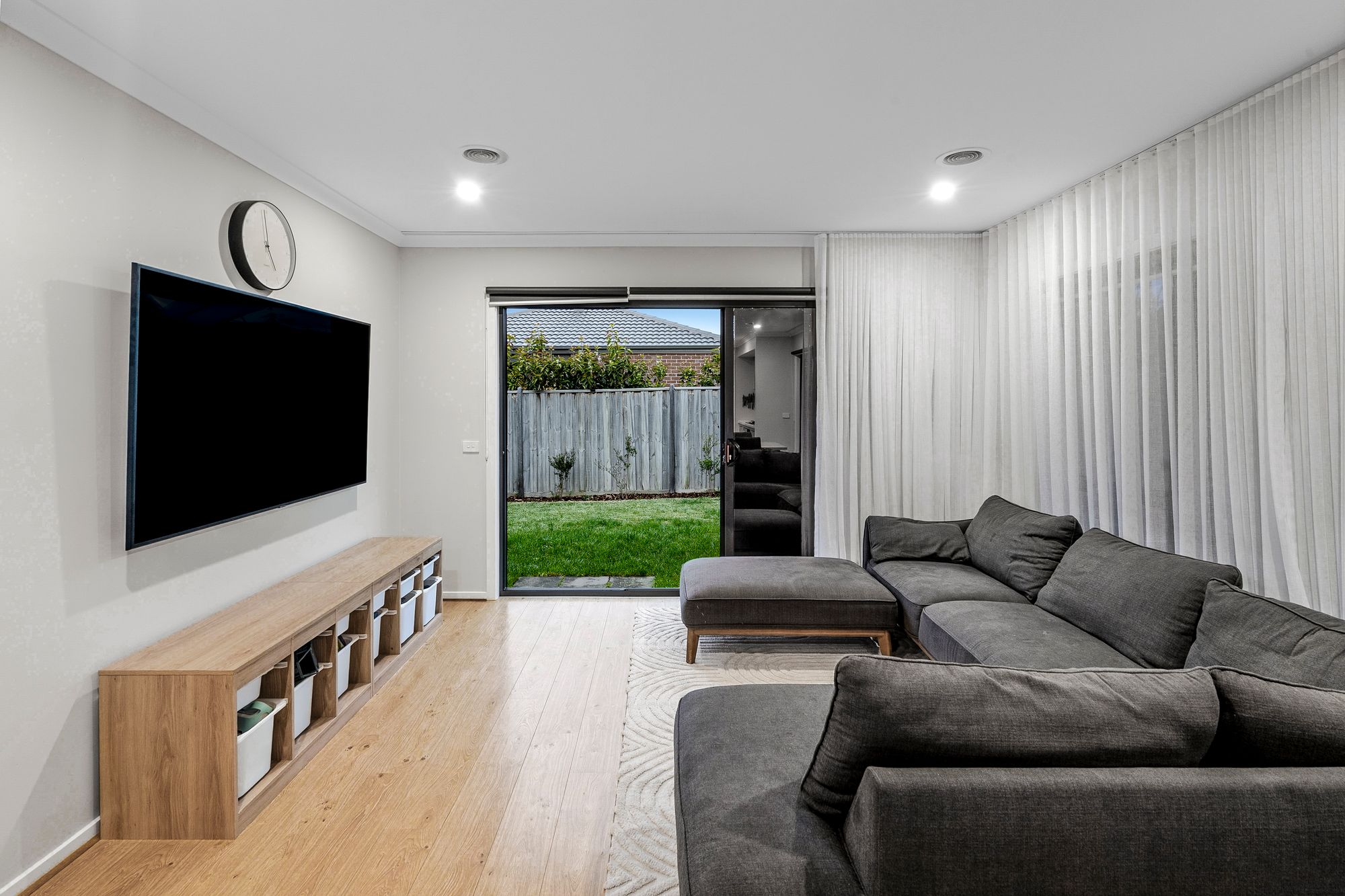 Crafted for both entertaining and relaxed family living, the home boasts soaring high ceilings, a designer kitchen that’s as functional as it is beautiful, and seamless indoor-outdoor flow. Double-stacking doors open onto a generous undercover alfresco—perfect for weekend gatherings, sunset dinners, or simply enjoying a quiet moment in the fresh air.