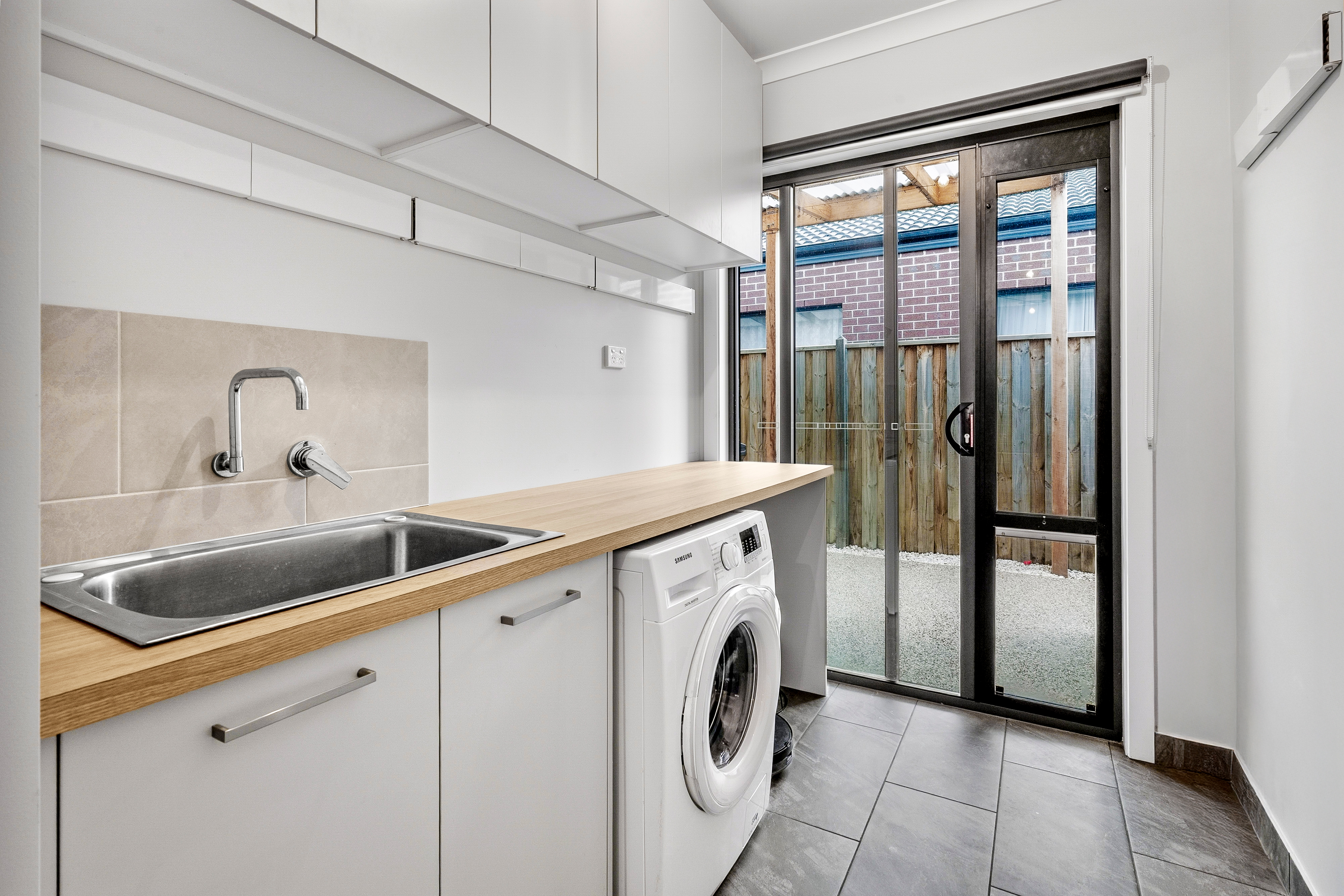 Mod Cons: Club Armstrong access, walk-in linen closet in the main hallway, double car garage with remote control door, laundry with custom benchtop and storage, private yard, NBN/Opticomm access, single side gate access, downlights, access to the backyard from laundry, access to recycled water, chrome fittings, exposed aggregate concrete driveway