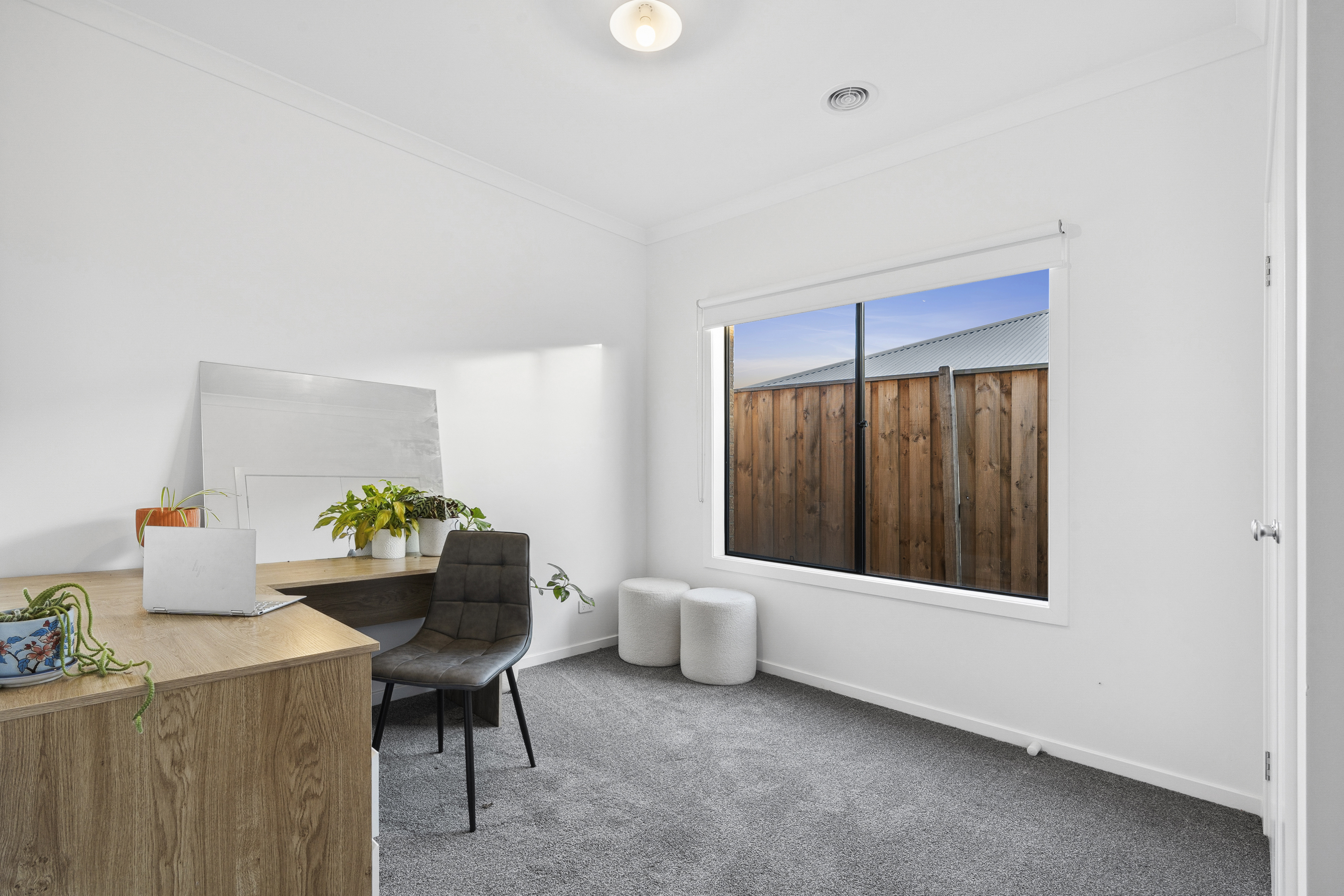Second Living: Located to the front of the home, ducted heating & evaporative cooling, downlights, roller blinds & engineered timber flooring.