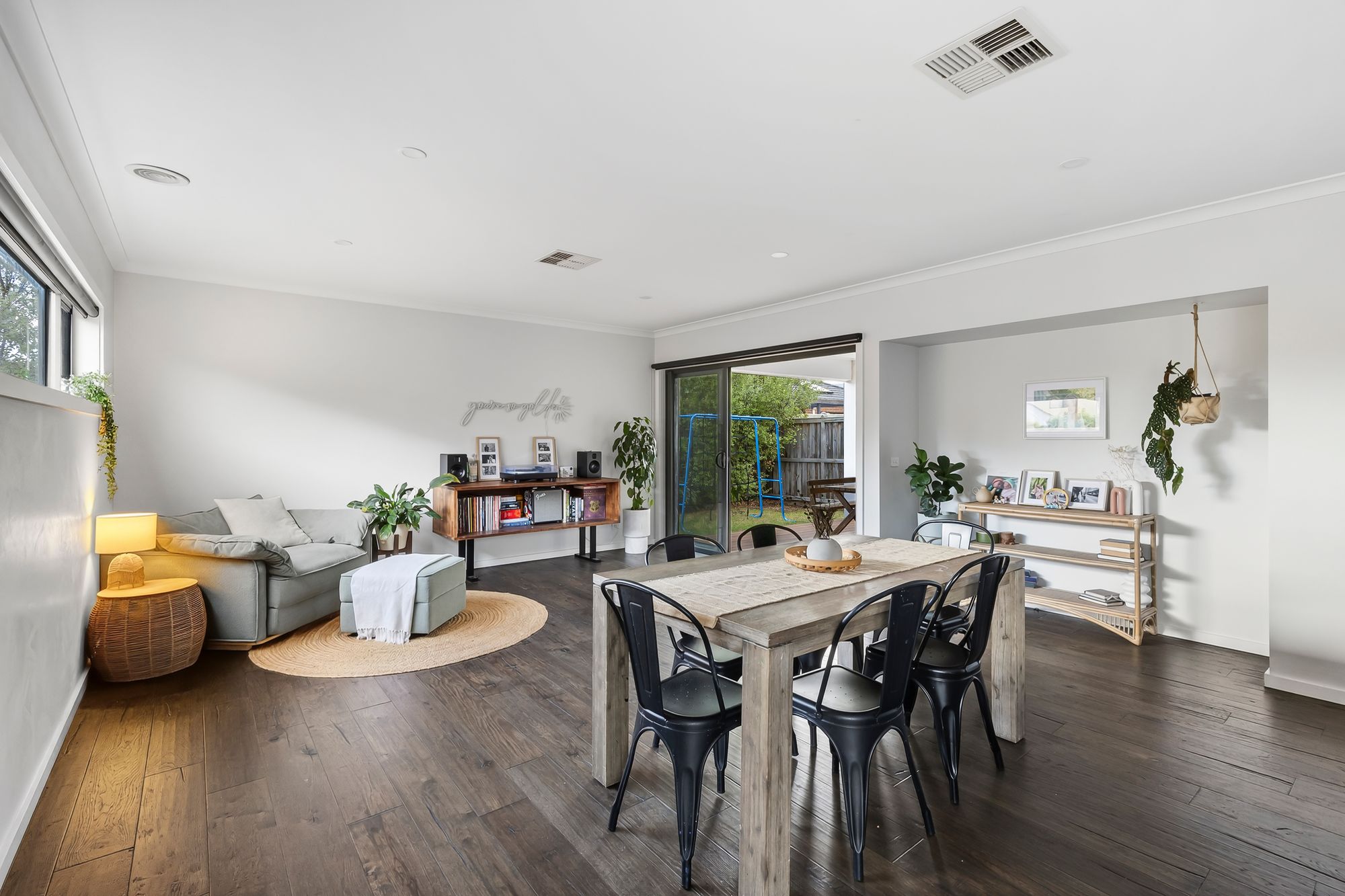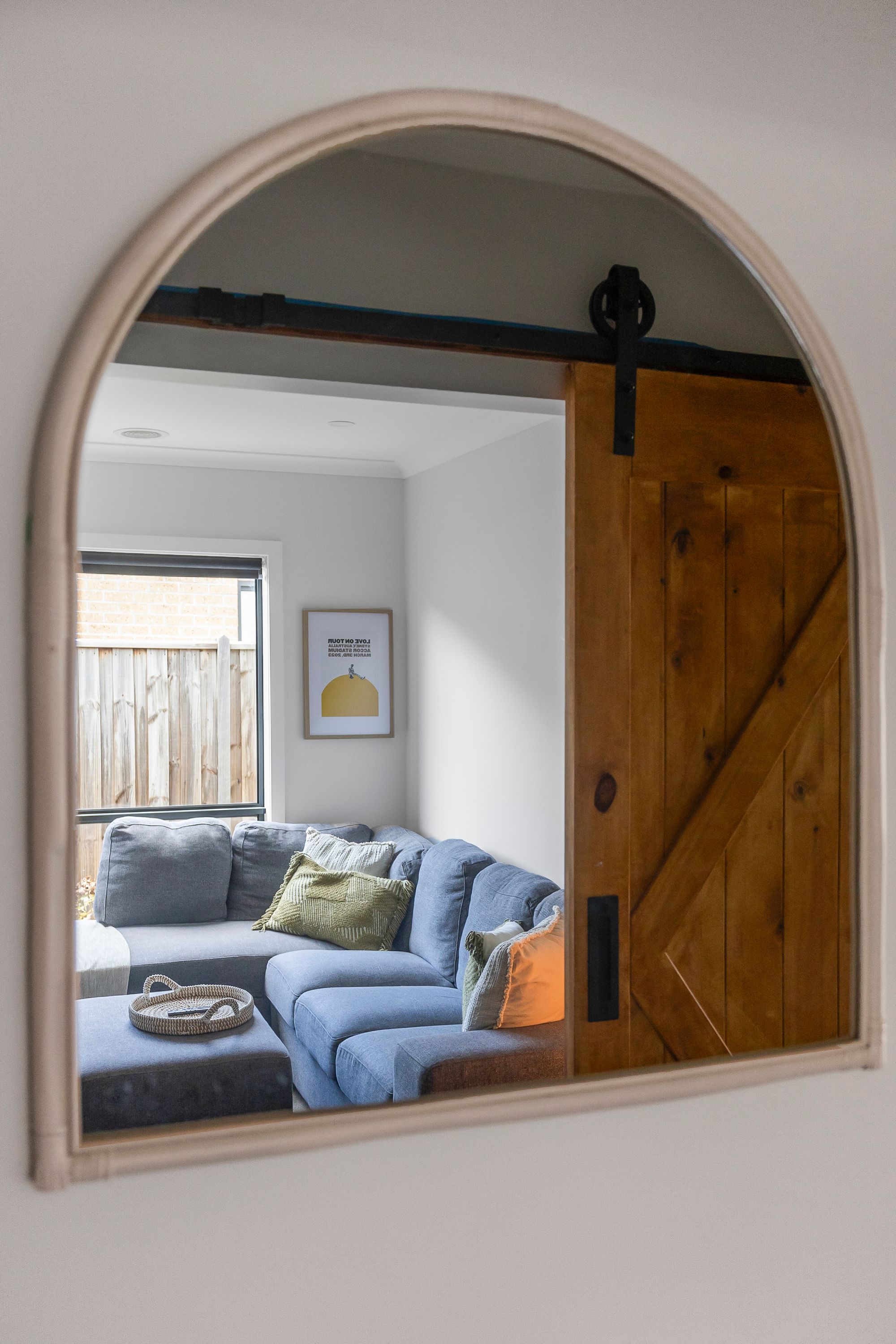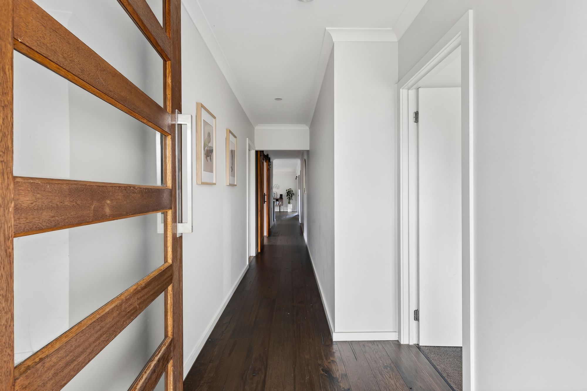 Second Living – custom timber barn doors, carpet, downlights, ducted heating & evaporative cooling.