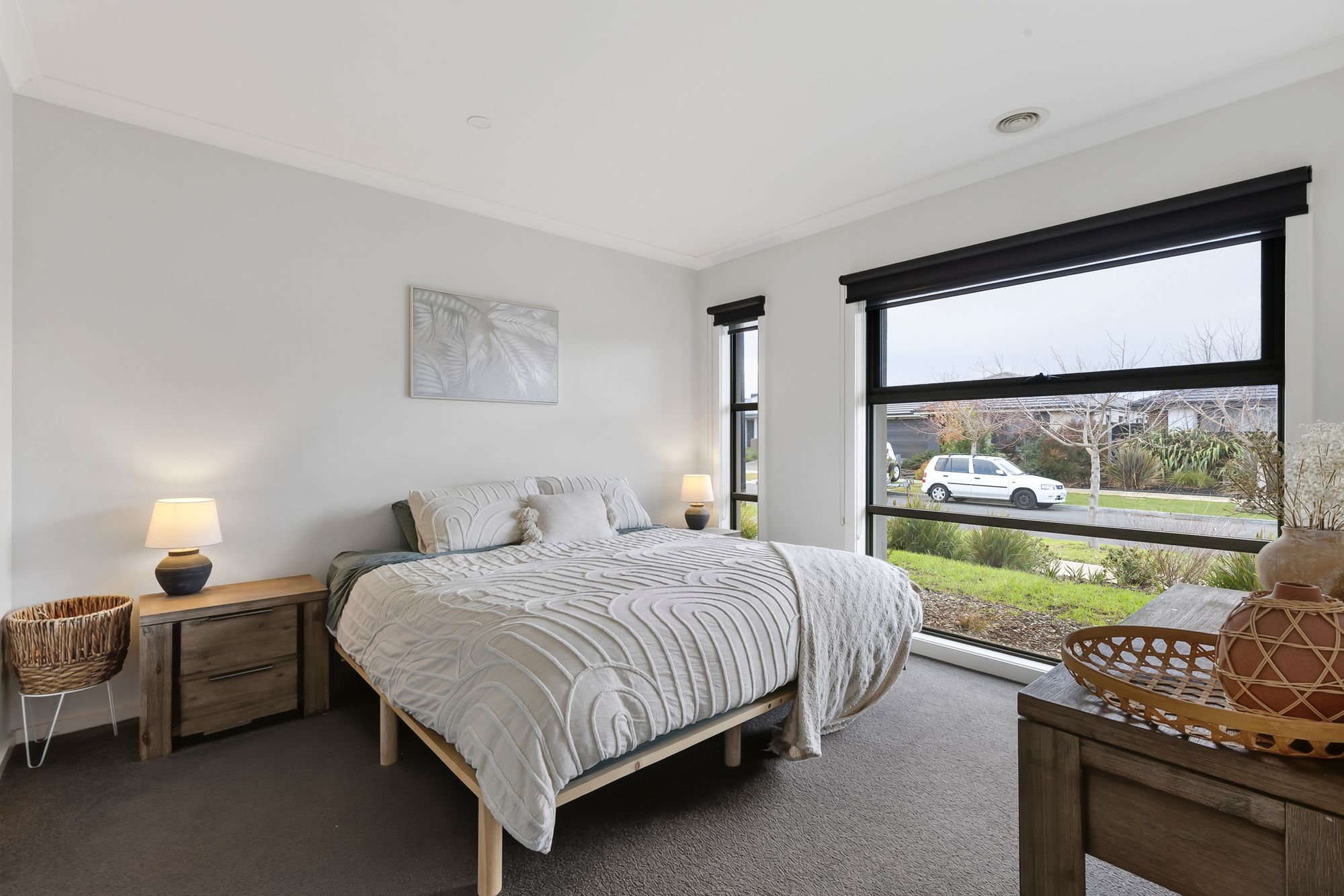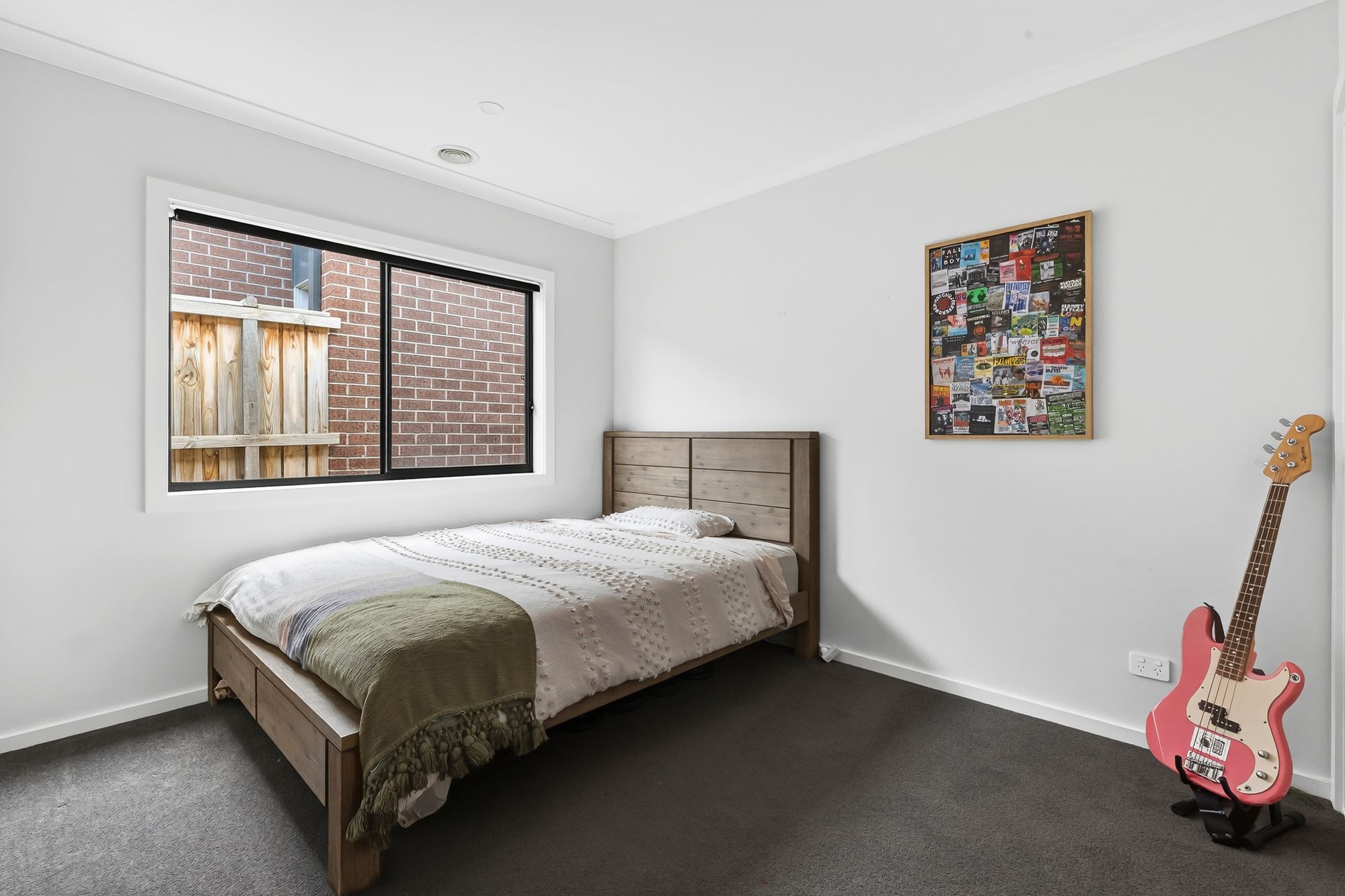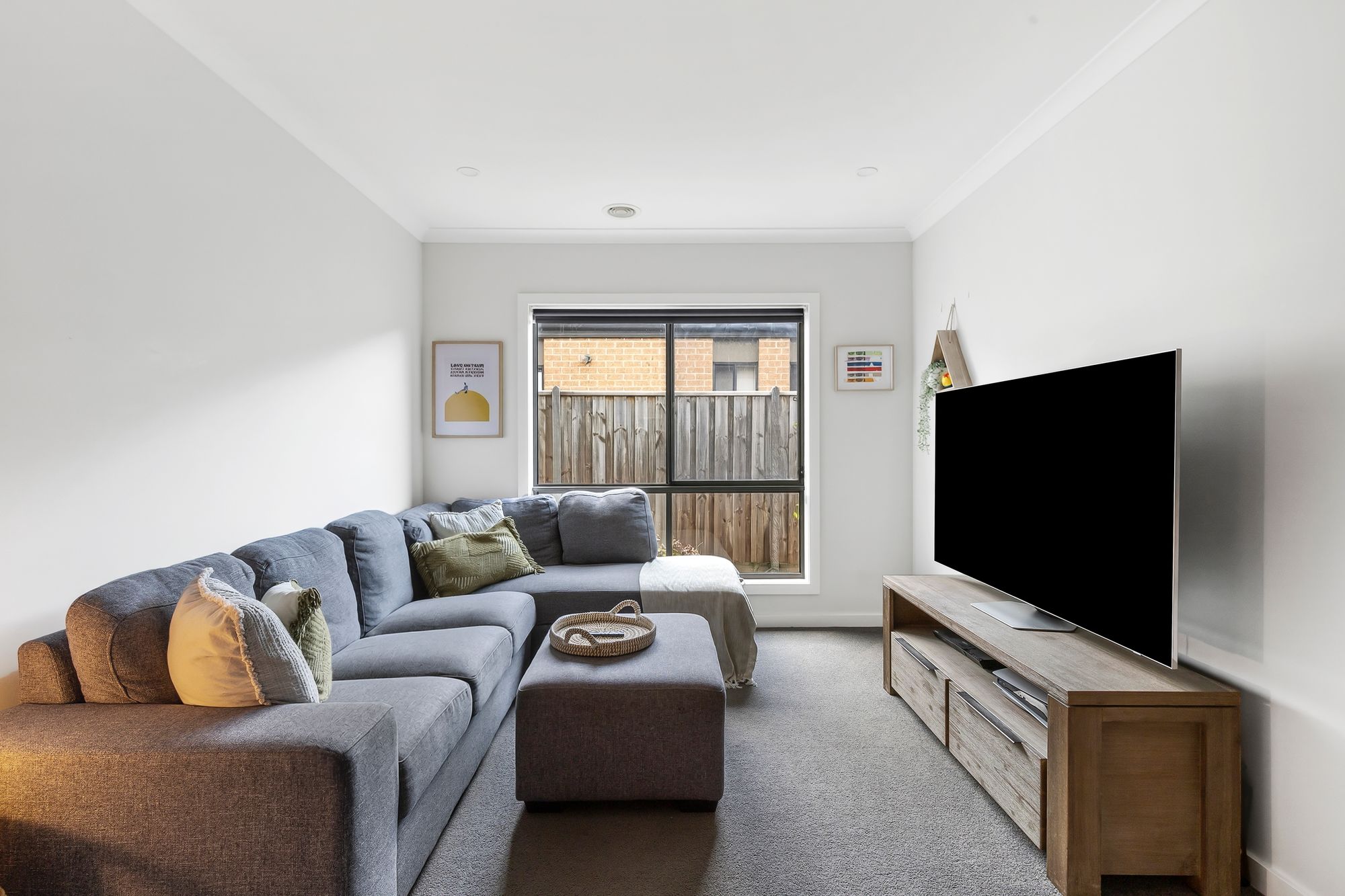 Second Living – custom timber barn doors, carpet, downlights, ducted heating & evaporative cooling.