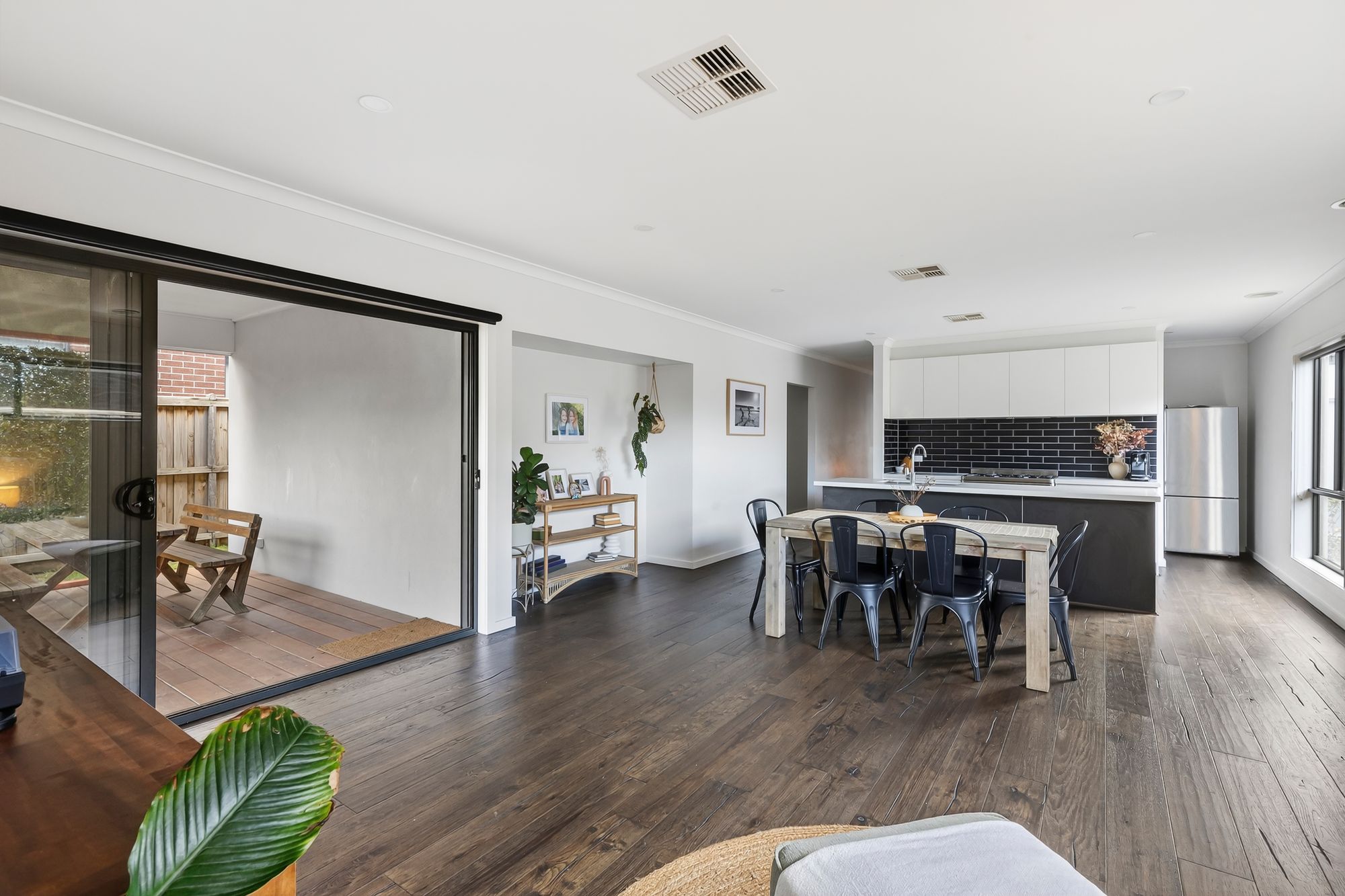 Main Living – open plan adjoining kitchen, dining & living, seamlessly flows through sliding stacker doors to outdoor undercover alfresco, ducted heating & evaporative cooling, bamboo timber flooring & downlights.