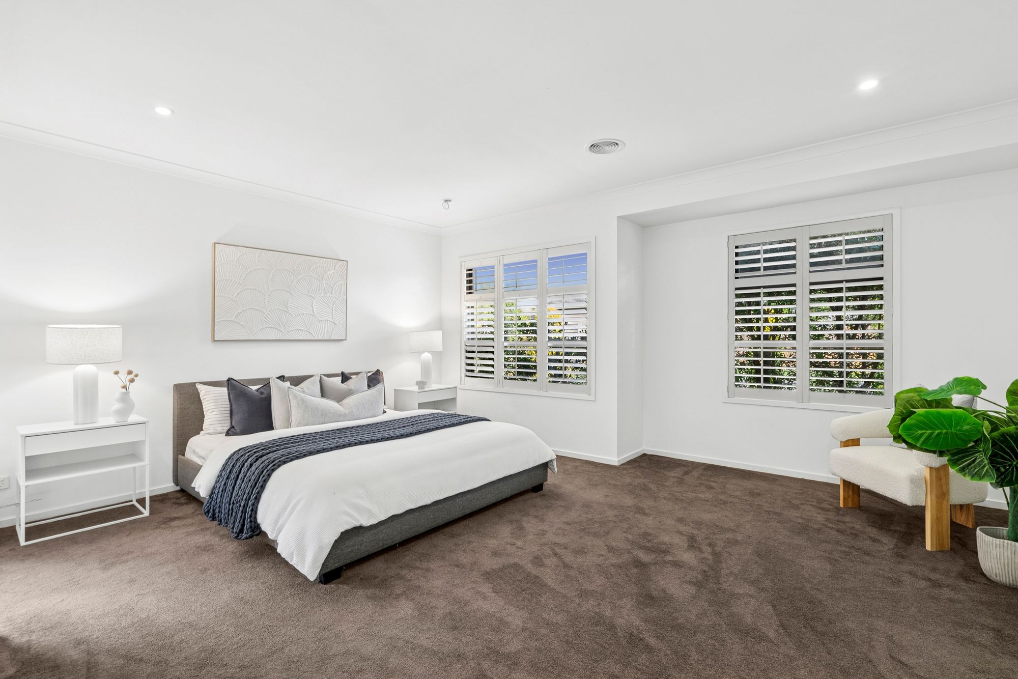 Substantially sized, carpeted, plantation shutters, spacious walk-in robe, large ensuite, high ceilings, downlights, ducted heating, evaporative cooling,