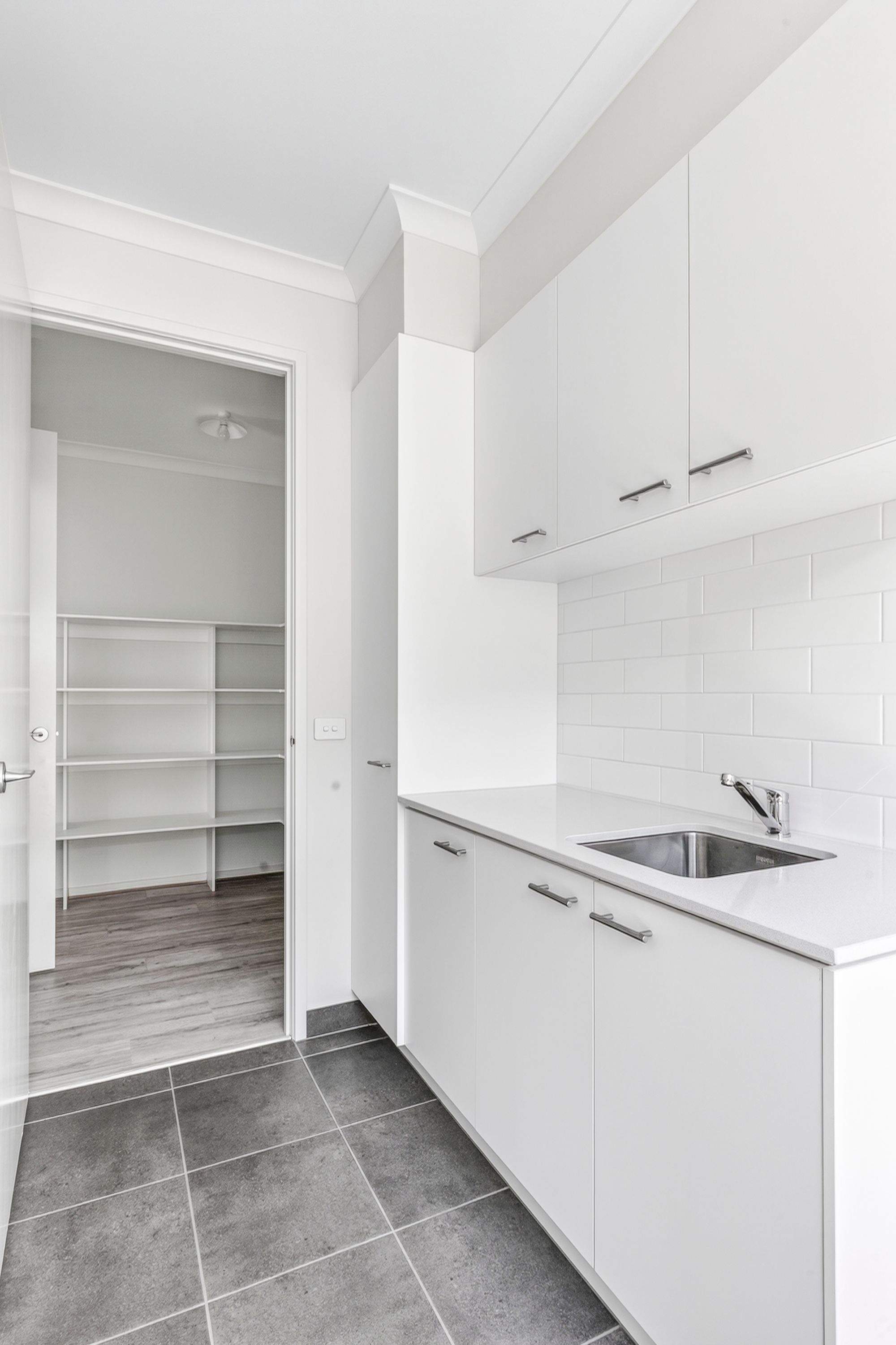 Modern Conveniences – Laundry with stone benchtop and undermount sink plus linen cupboard, extra storage throughout, double garage with internal and external access, 2700mm ceilings and doors, chrome fittings, and dual roller blinds to the master.