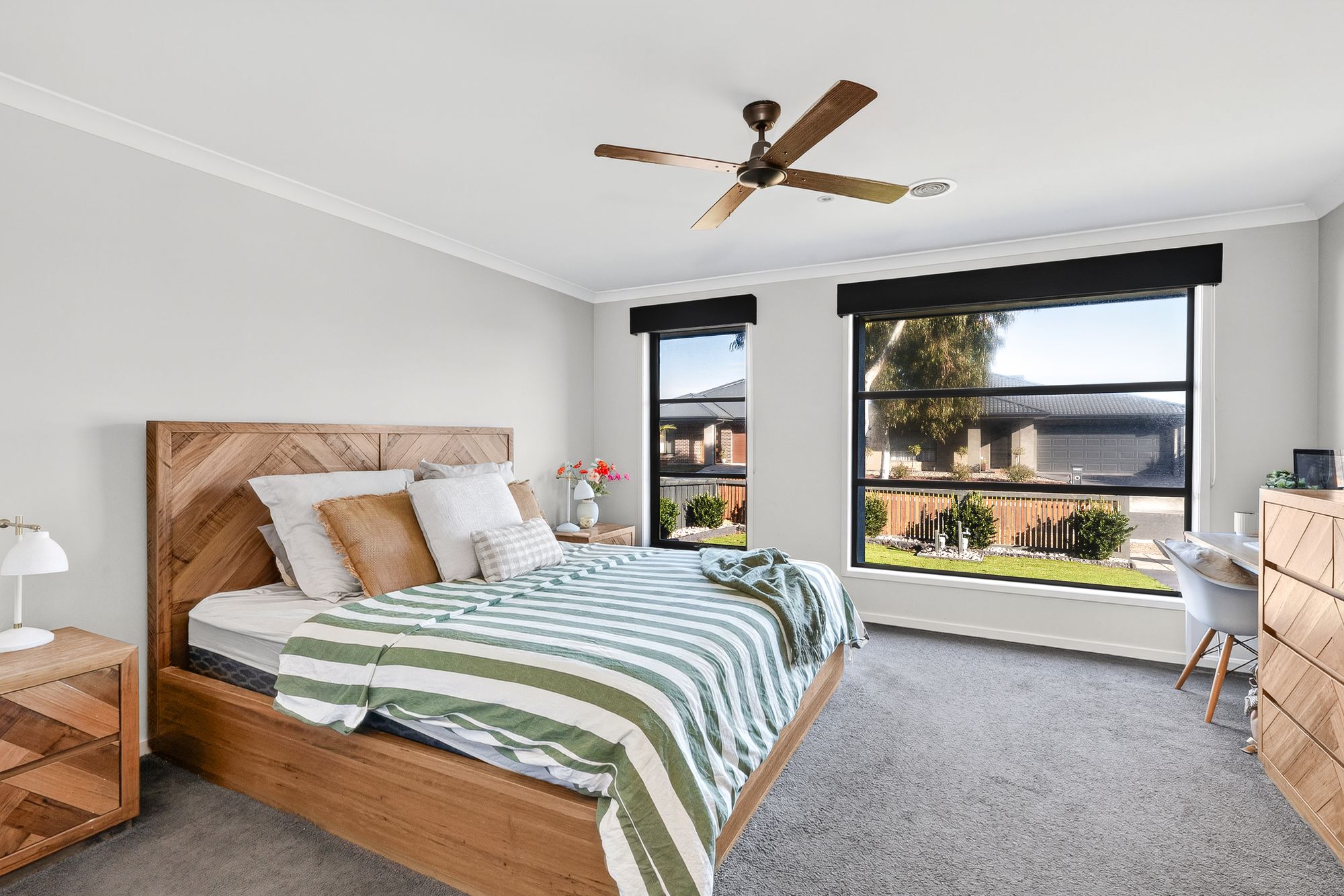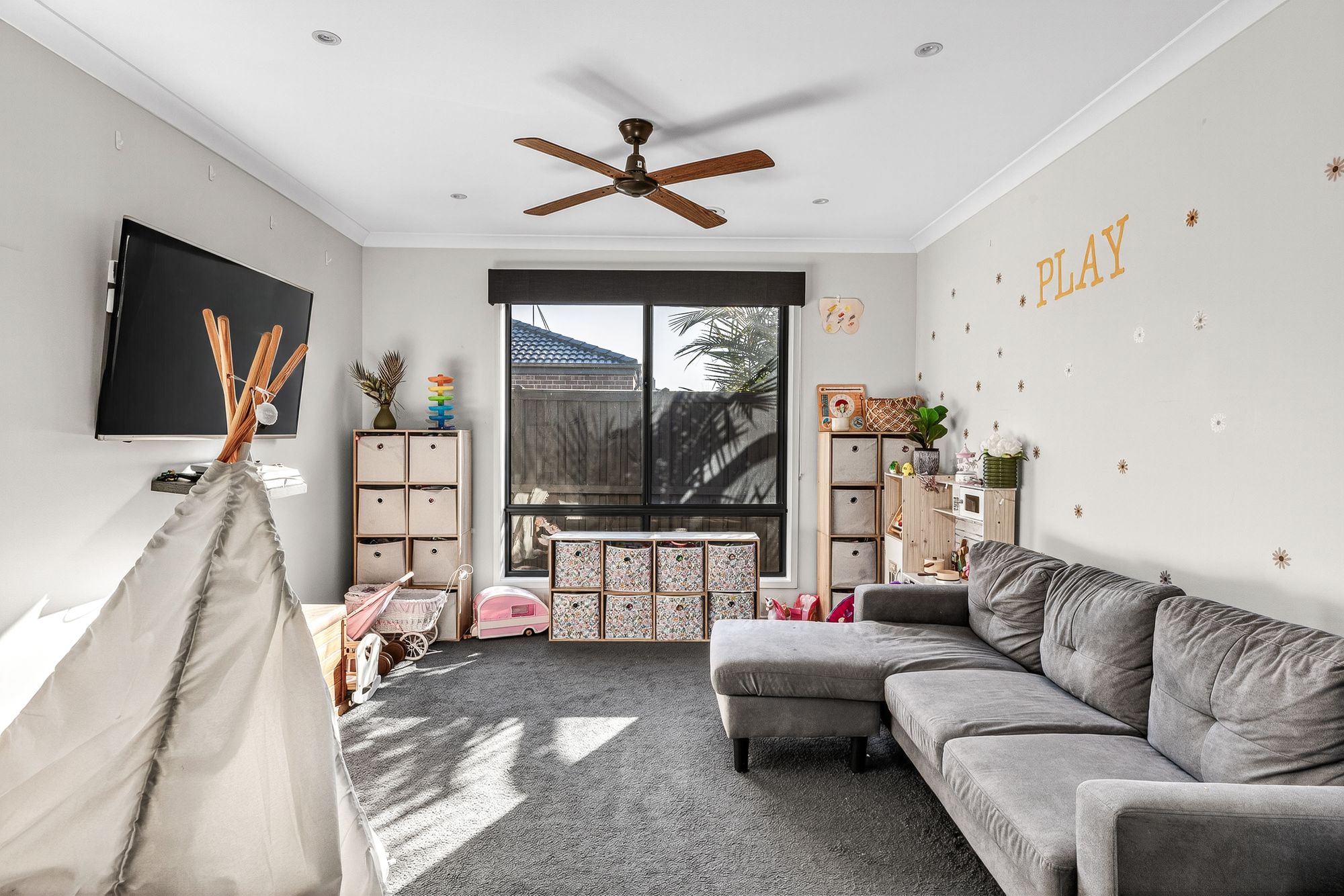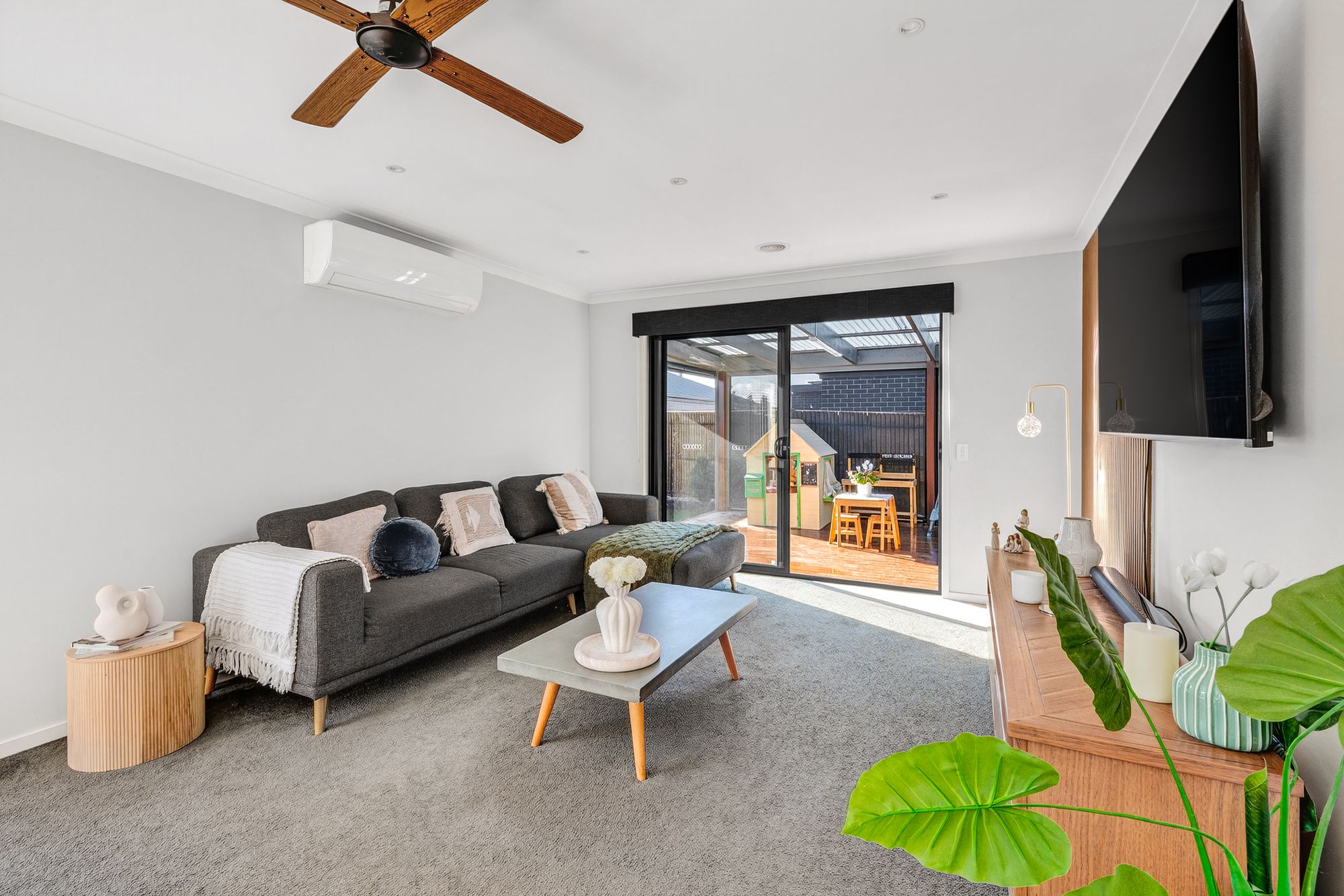 Beautifully presented and thoughtfully designed, this impressive home offers a lifestyle of comfort, style, and convenience. Boasting a functional layout, it features four generously sized bedrooms and two spacious living areas that flows effortlessly to a beautiful undercover decked alfresco area and landscaped backyard—an ideal space for kids and pets to play. Quality finishes, ceiling fans and ducted heating throughout, and a modern colour scheme create a contemporary yet functional atmosphere throughout. Enhanced with upgraded outdoor blinds and additional heating, the outdoor area offers a versatile extension of the living space—ideal for families and guests to enjoy year-round entertaining. Set in the heart of Charlemont this home enjoys the best of coastal, rural, and urban living. Just a short walk from the upcoming Horseshoe Bend Primary School and Charlemont Rise Shopping Centre, you’ll have easy access to everyday essentials and quality education right at your doorstep.