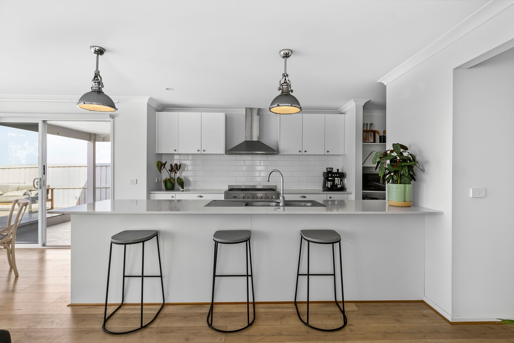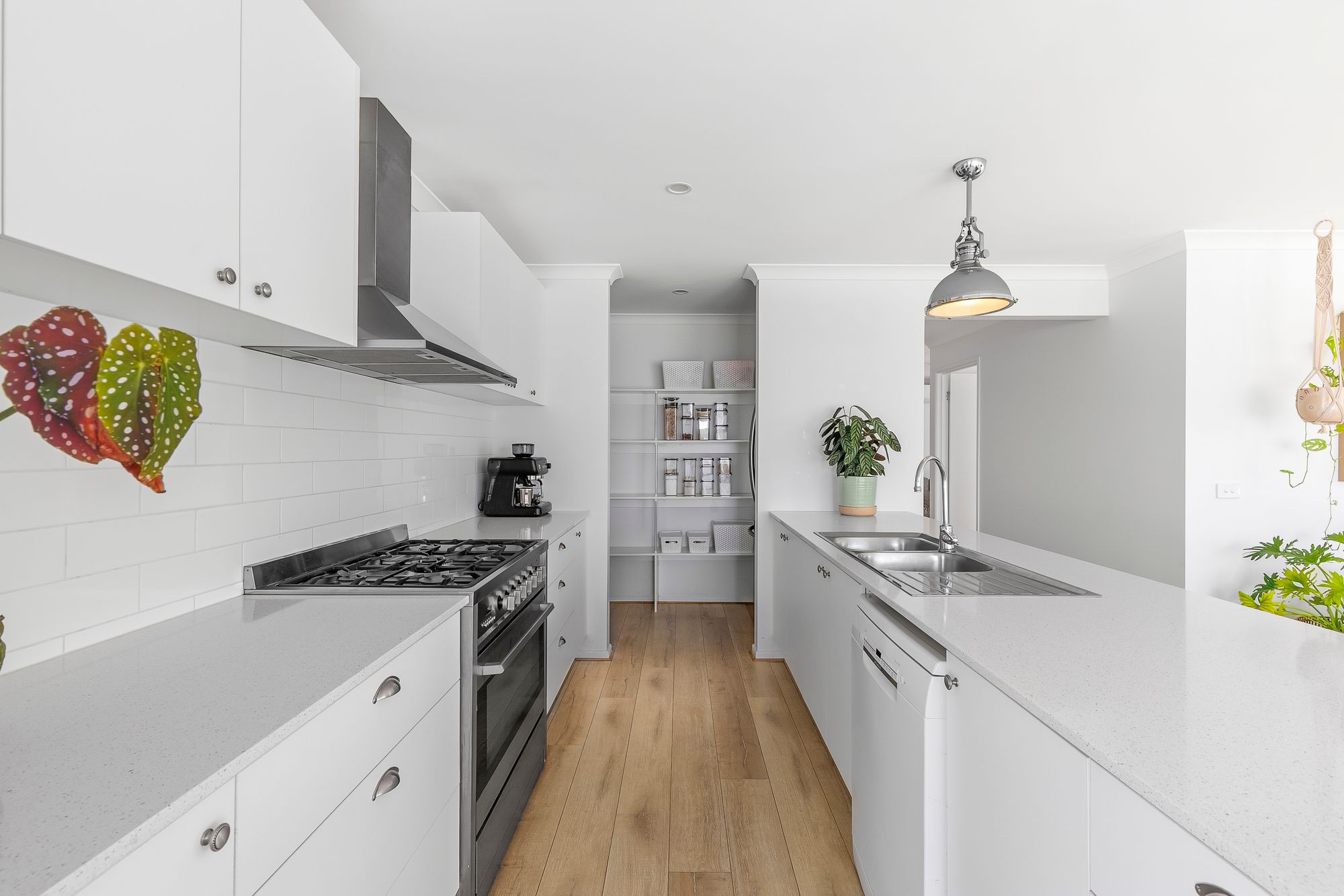 Kitchen: Cater in style with 20mm stone benchtops, pendant lighting, pot drawers for extra storage, a 900mm freestanding oven and stove, overhead cabinetry, and a striking subway tile splashback. The well-appointed walk-in pantry includes a plethora of shelving and a large fridge cavity.
