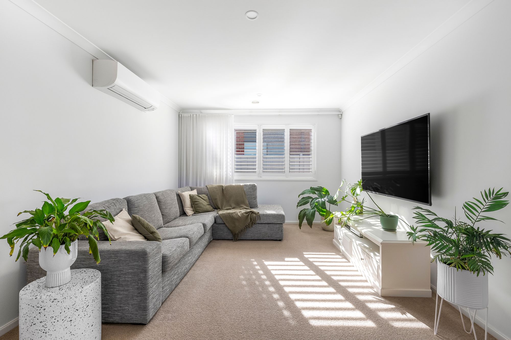Additional Living Spaces: The second lounge is perfect for relaxation or movie nights, complete with soft carpet, ducted heating, a split system for cooling, wide windows with plantation shutters, and a welcoming atmosphere.